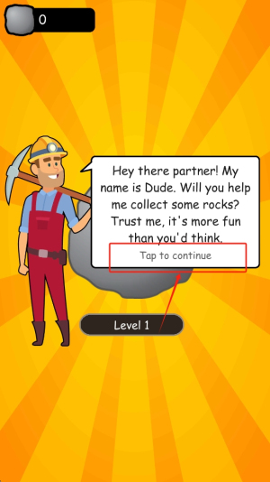 1、开始游戏:点击屏幕上的“Tap to continue”按钮,开始游戏并进入第一关。