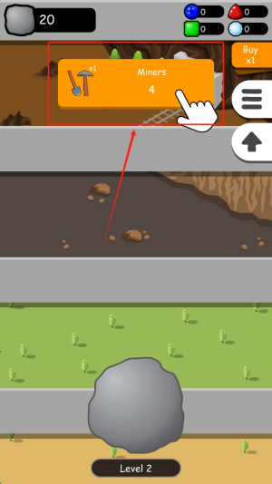 3、升级工具:在游戏界面,点击“Miners”按钮购买或升级工具,以提高采矿效率。