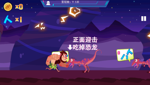 3、进行游戏:在游戏过程中,通过操作角色避开障碍物,吃掉恐龙,完成关卡目标。
