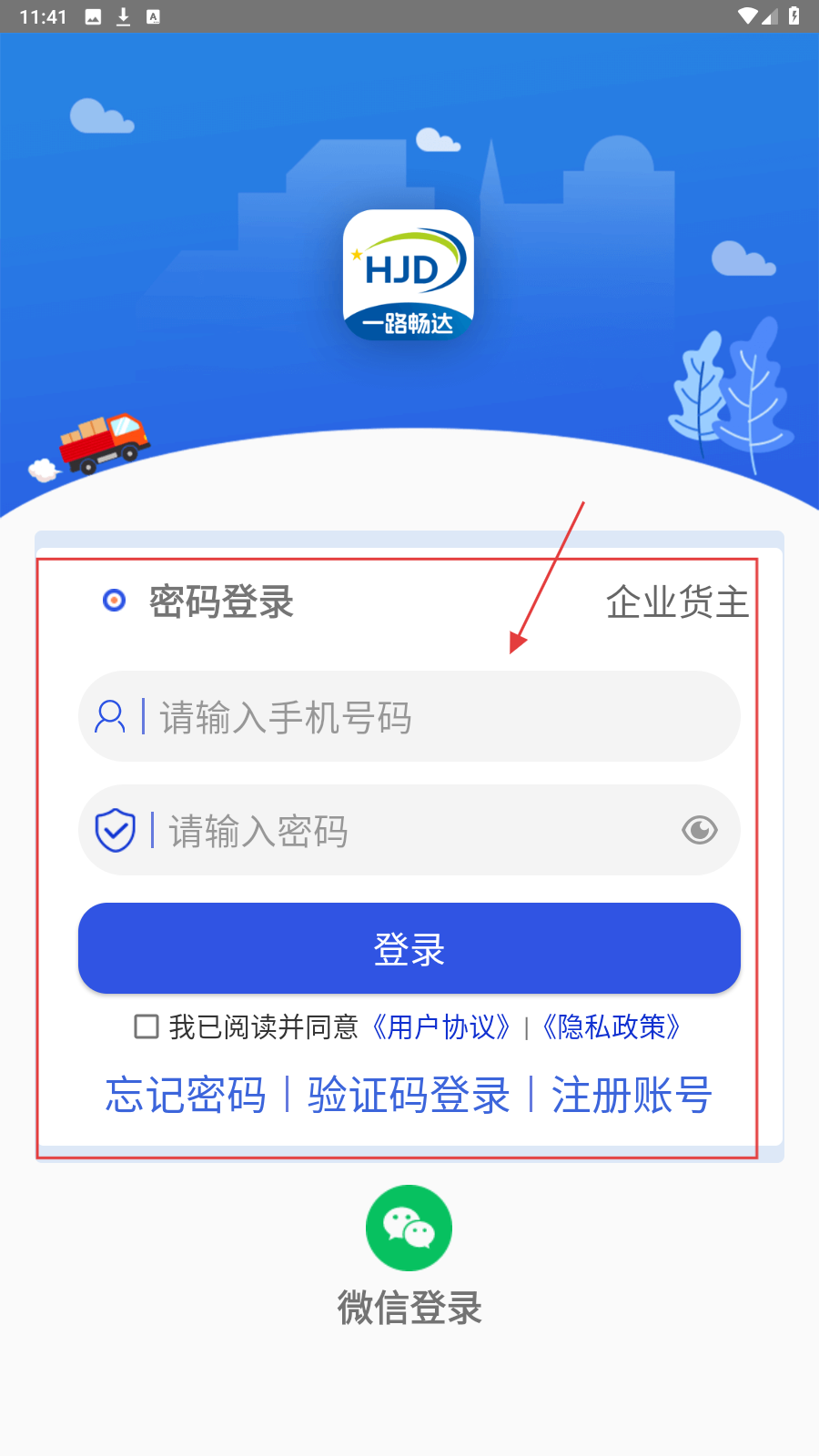 3、选择登录方式(密码/验证码/微信),完成登录后,与货主沟通下单细节,达成一致即可下单。
