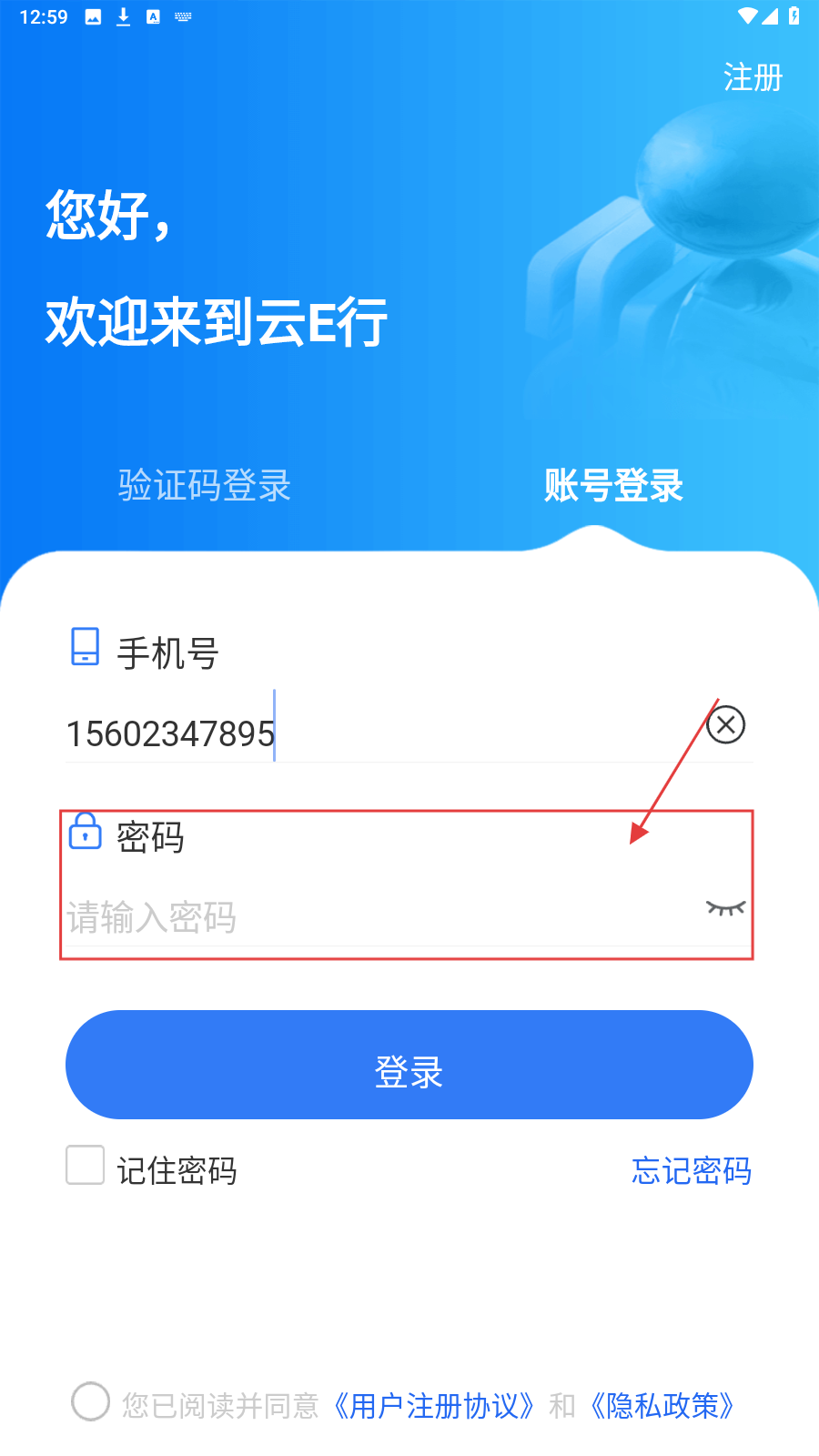 1、打开应用登录页,选择【账号登录】,在“手机号”栏输入手机号码。