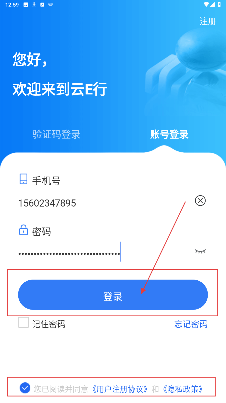 3、勾选【您已阅读并同意《用户注册协议》和《隐私政策》】,点击【登录】按钮,完成登录操作。
