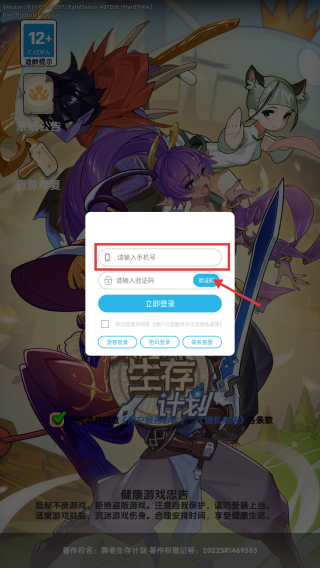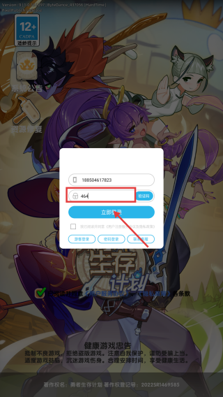 3、输入验证码,点击【立即登录】,即可开始游戏。