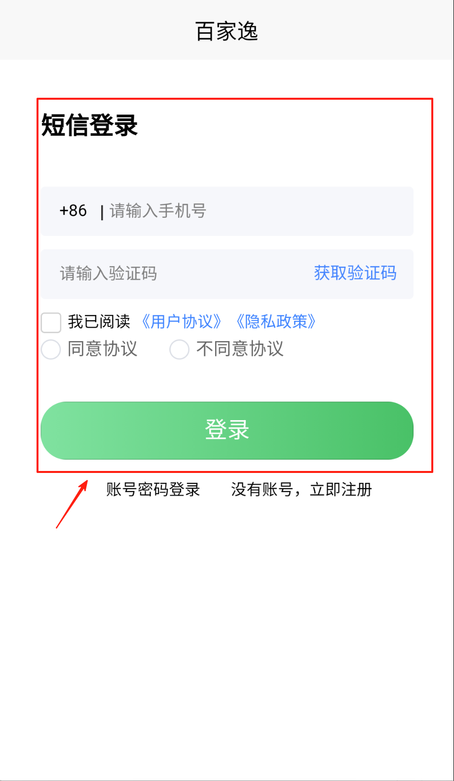 1、短信登录先输手机号点获取验证码,收到填进框内必须勾选用户协议隐私政策,最后点登录键就能进入系统啦。