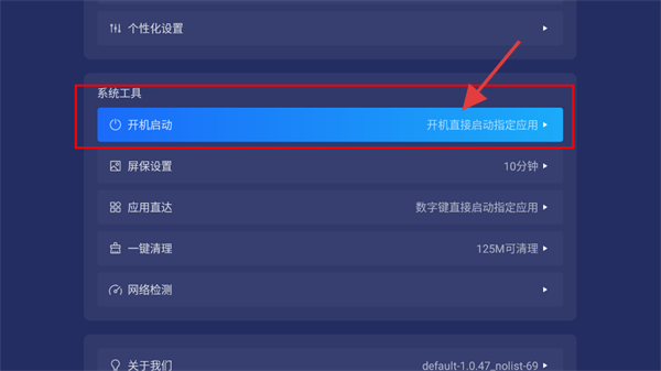 2、点击首页上方设置图标(或【桌面设置】入口),进入设置页,可找到系统工具(如【开机启动】),按需设置开机直接启动指定应用。
