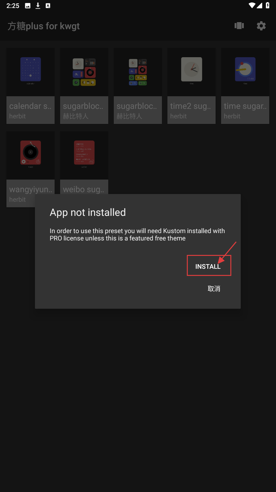 3、遇提示“Appnotinstalled”,按指引点击【INSTALL】安装所需应用,完成后可使用对应预设组件。