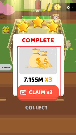 3、完成关卡后,点击“CLAIM×3”按钮领取丰厚奖励,积累游戏货币。利用奖励提升角色属性或解锁新关卡,持续推进游戏进程。