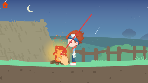 3、当遇到狼等危险生物时,手持火把进行防御,通过点击或滑动屏幕控制角色与狼的距离和方向,保障自身安全。