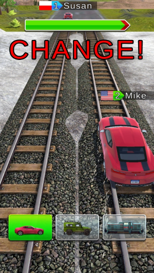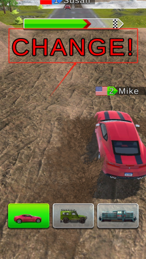 2、更换车辆:在游戏过程中,点击“CHANGE!”提示,选择不同车辆应对不同赛道挑战。