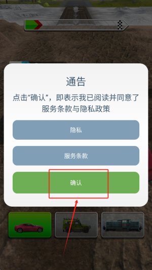 1、接受条款:点击“确认”按钮,表示已阅读并同意服务条款与隐私政策,以便继续游戏。