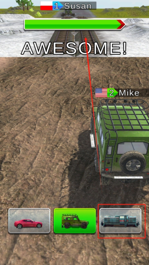 3、完成比赛:成功切换车辆后,继续比赛,努力赢得比赛,获得“AWESOME!”的评价。