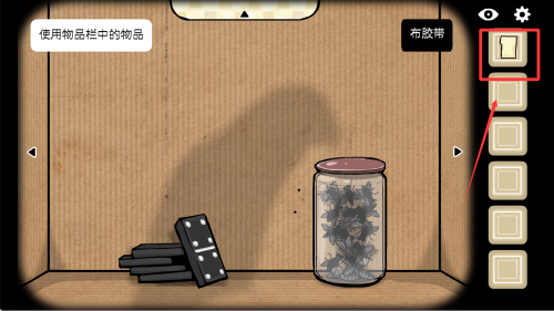 2、随着游戏推进,注意物品栏提示“使用物品栏中的物品”,当获取新物品(如布胶带)时,思考其用途,尝试与场景中的其他元素互动。