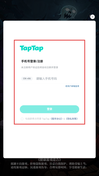 1、进入游戏,自动弹出TapTap账号登录界面。
