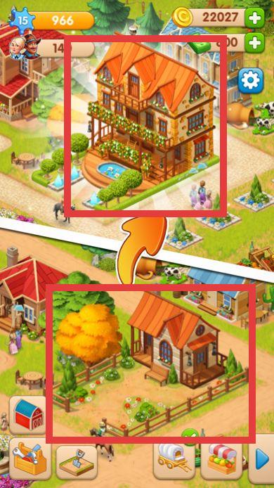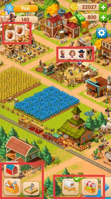 2、点击功能按钮,如建造新建筑、使用工具等,合理规划农场布局,可优先建设能快速产出资源的建筑。利用农田种植作物。