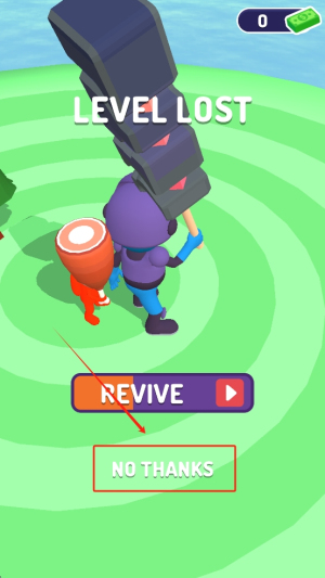 3、游戏结束选择:当游戏结束后,点击“NO THANKS”按钮,选择不复活继续游戏。