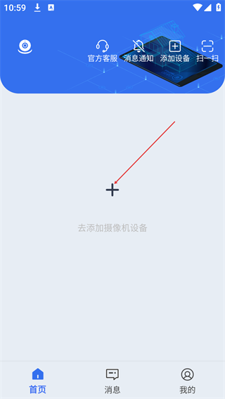 2、在应用首页,点击页面中的“+”按钮,进入添加设备方式选择页面。