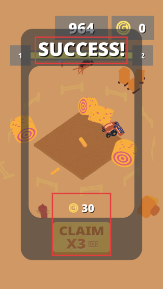 3、当屏幕显示“SUCCESS!”,表示关卡成功。此时可点击“CLAIMX3”按钮,领取30单位资源奖励,利用奖励资源可解锁新关卡或升级道具。