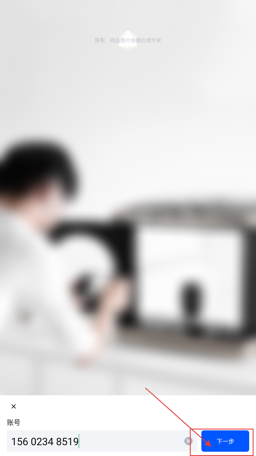 2、在注册界面,于“账号”输入框填入手机号码,点击【下一步】。