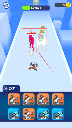 2、策略战斗玩法:不仅要消灭敌人,还得灵活走位躲避攻击,根据战场局势切换武器,合理规划无人机升级路线,策略性十足。