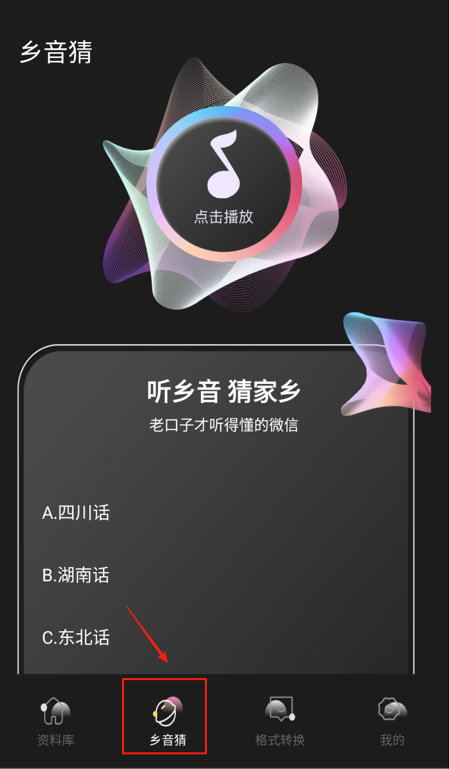 2、智能游戏舱:方言猜谜题库含5万声音片段,闯关模式解锁方言文化故事,方言水平测试生成能力报告,方言社交墙展示作品啦。