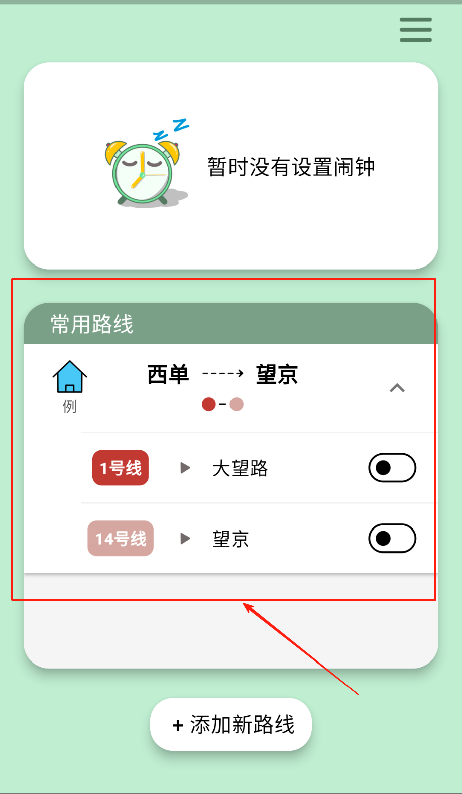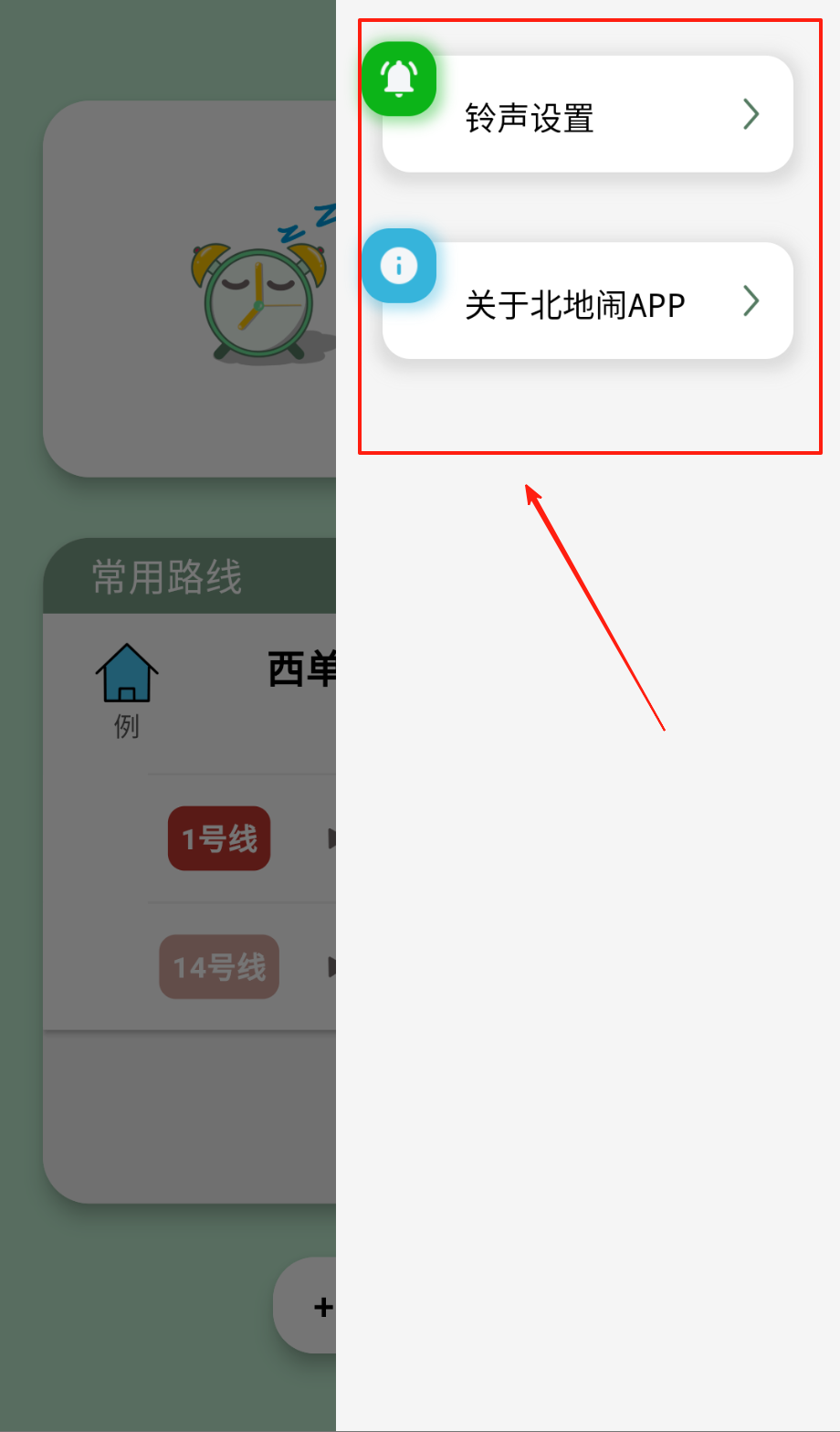 1、首页添加"10号线→国贸站"常用路线,拖拽滑块设定提前3站提醒,震动模式开启防漏听,个性化铃声选古钟报站音效哦。