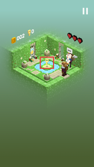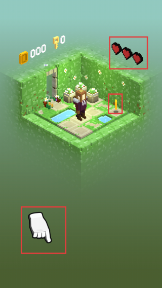 1、游戏开始,留意屏幕上方的金币和钥匙计数,以及右上角的生命值(红心)。通过点击屏幕上的白色手指图标与场景元素交互。