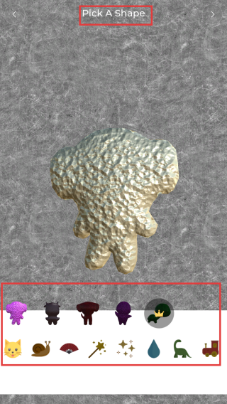 3、看到【PickAShape】提示后,在底部形状栏中选择心仪形状,不同形状图标对应不同造型,可按需选择来构建创作主体。