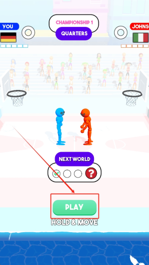 1、开始比赛:点击“PLAY”按钮开始游戏,准备与对手进行篮球比赛。