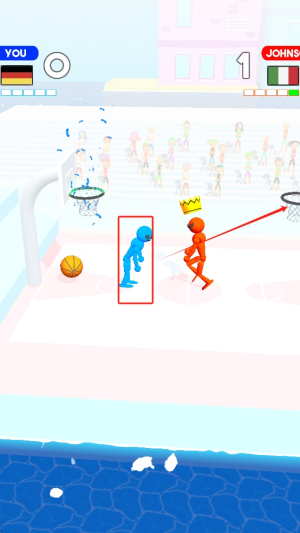 2、进行投篮:通过滑动屏幕控制角色移动并进行投篮,尝试得分。
