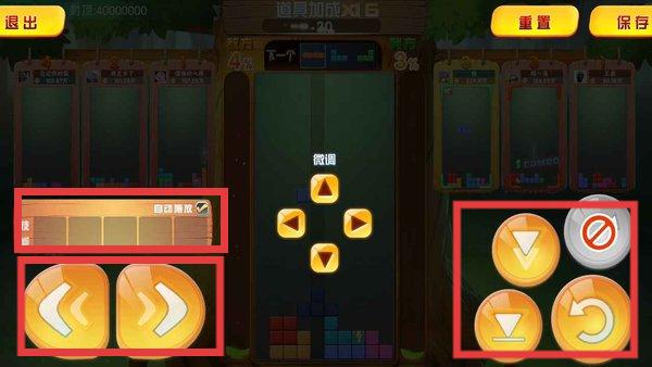 3、灵活运用操作键,利用左右箭头键调整方块横向位置,微调键进行细微调整,通过旋转键改变方块方向,如需暂停操作可点击禁止符号键。