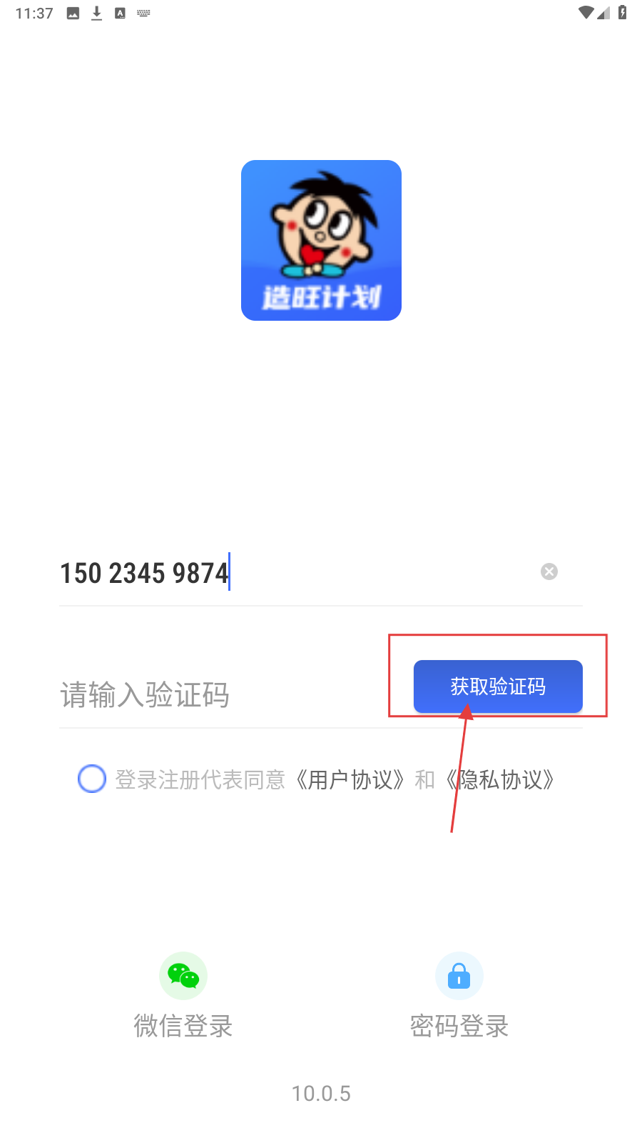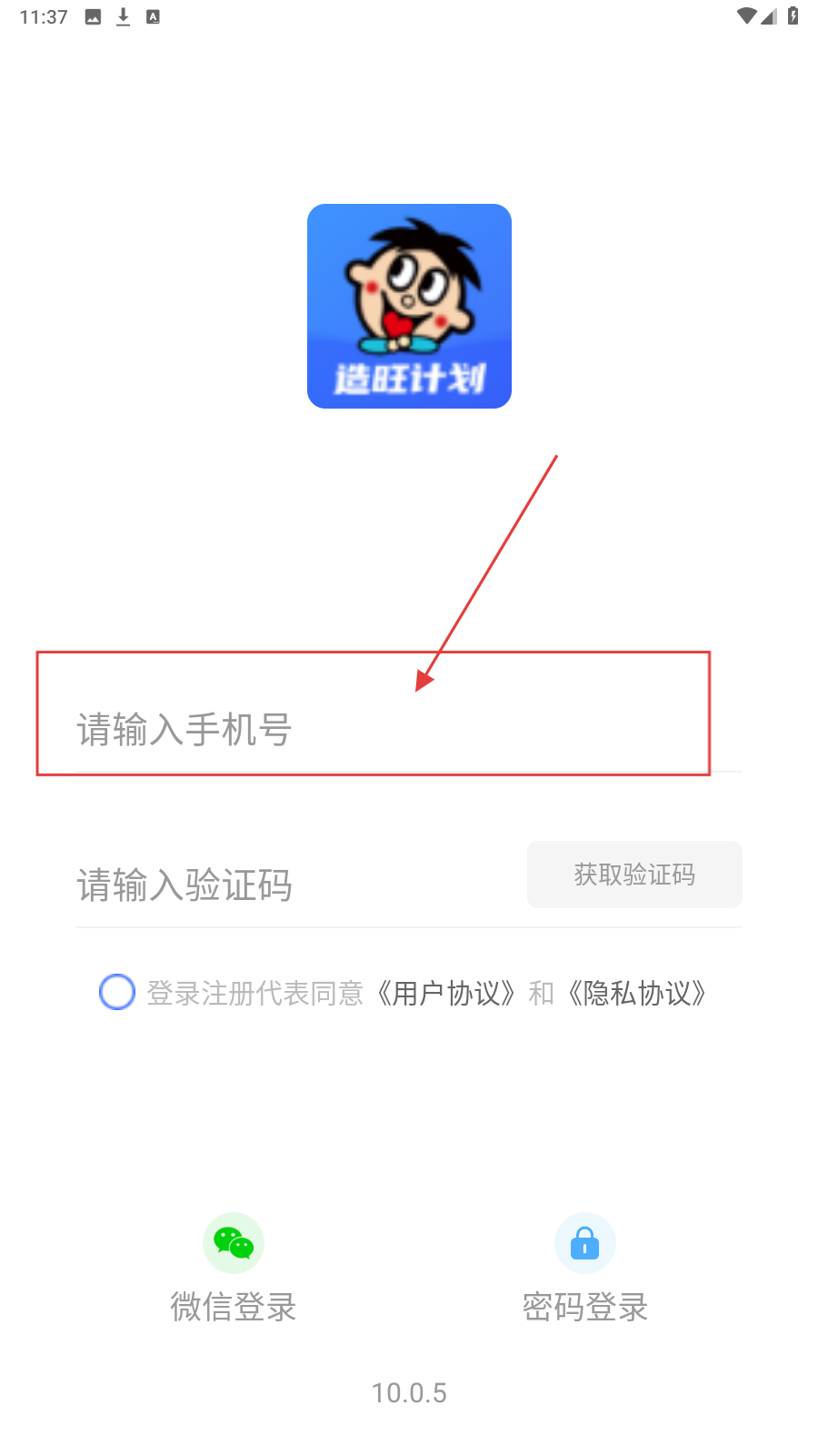 1、在“造旺计划”登录页,点击“请输入手机号”输入框,填入手机号码。