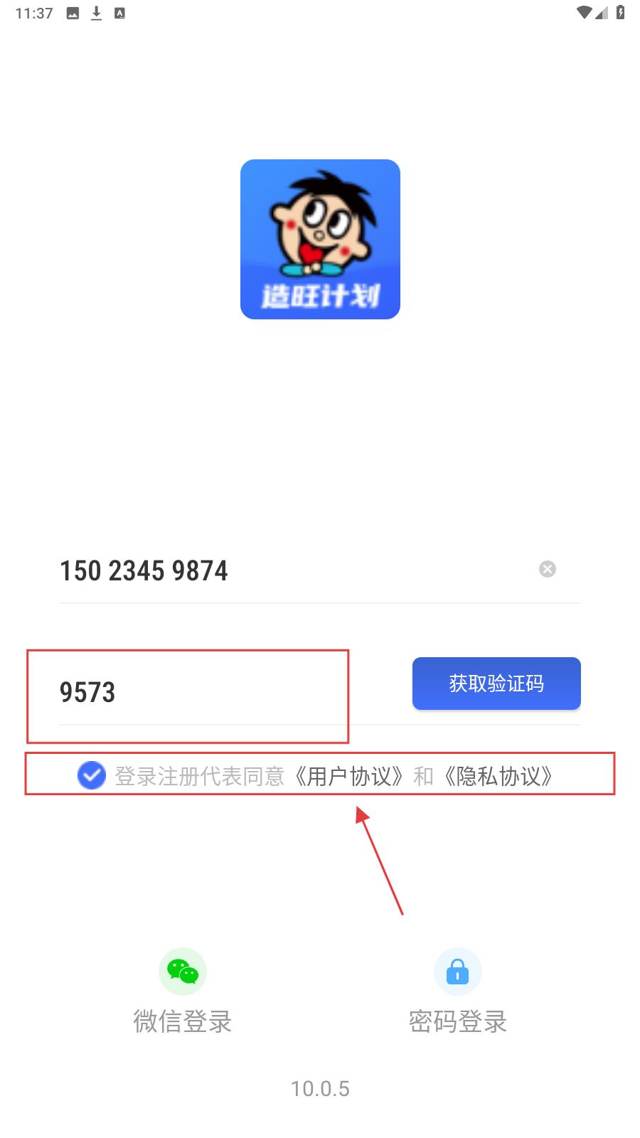 2、点击【获取验证码】,接收并填入验证码,勾选同意协议。