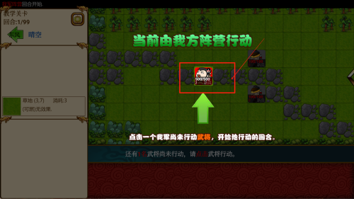 3、进行游戏操作:在战斗界面中,点击你想要操作的武将,开始他的行动回合。