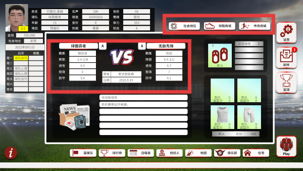 2、比赛界面中,关注对阵信息,借助【社会地位】【球商觉醒】等功能选项,分析对手数据,合理安排战术,提升比赛胜算。