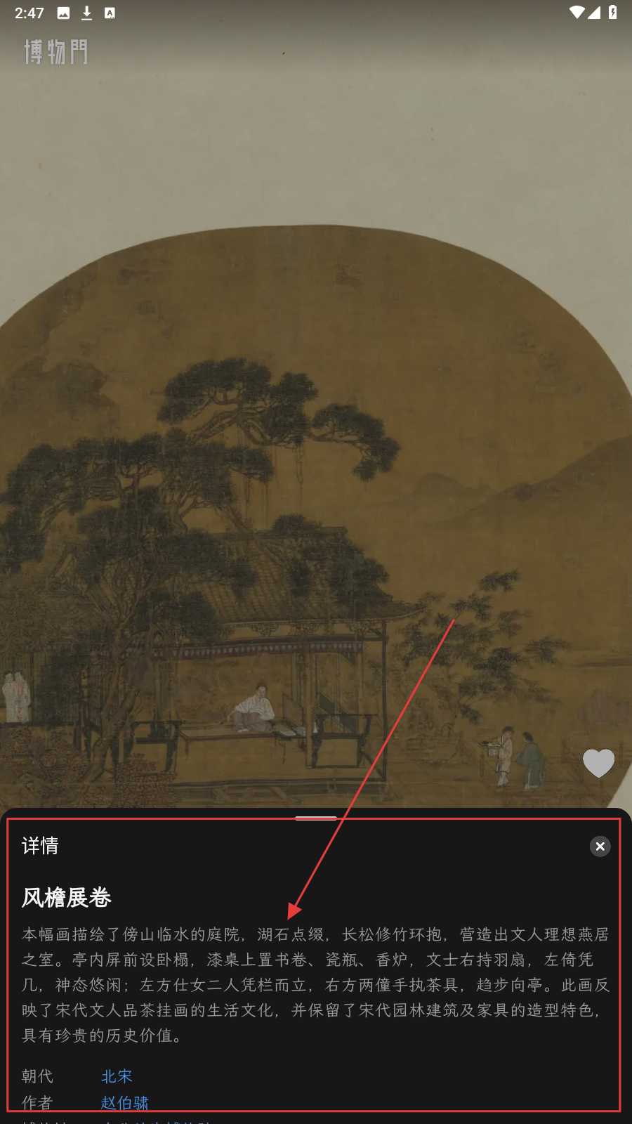 2、切换至《风檐展卷》,可查看详情(北宋赵伯骕作品,描绘文人庭院生活,反映宋代文化)。