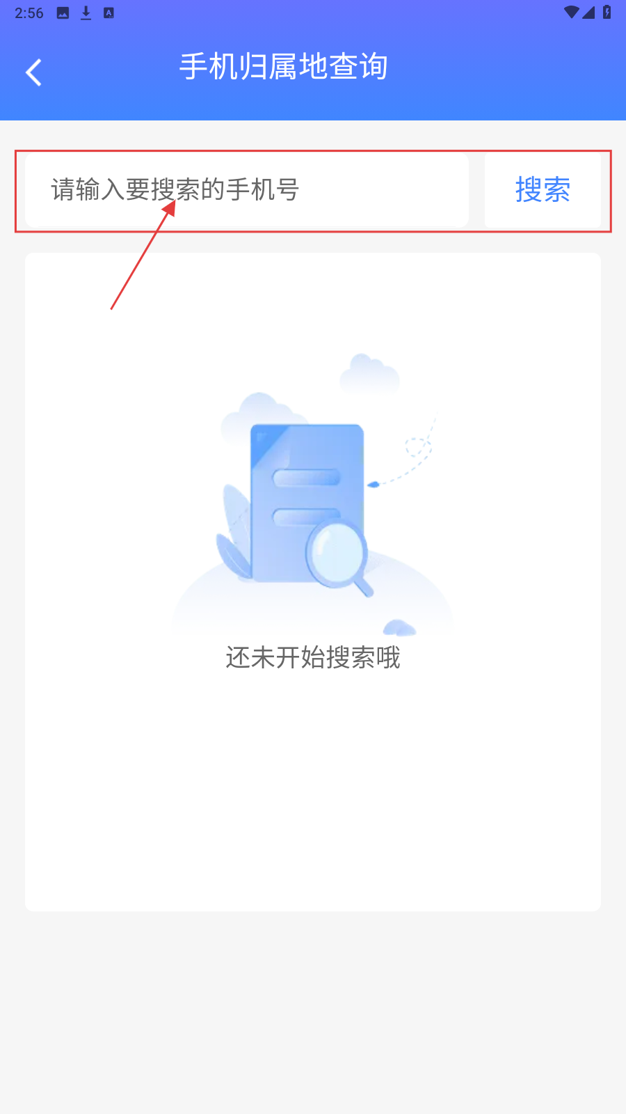 2、点击【手机归属地】,在【请输入要搜索的手机号】框填入号码,点【搜索】,查询归属信息。