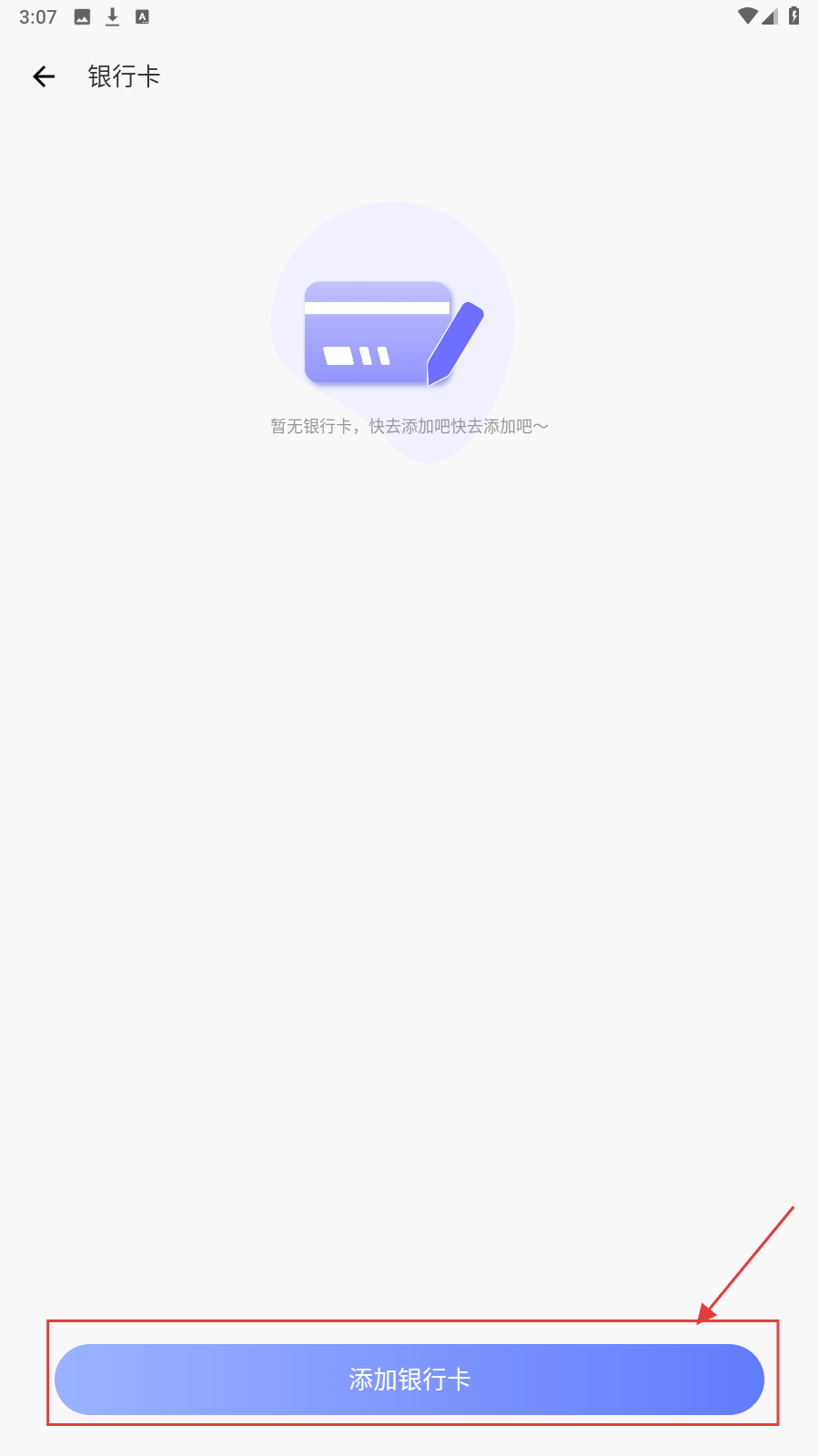 2、跳转【银行卡】页,点【添加银行卡】,进入信息填写页。