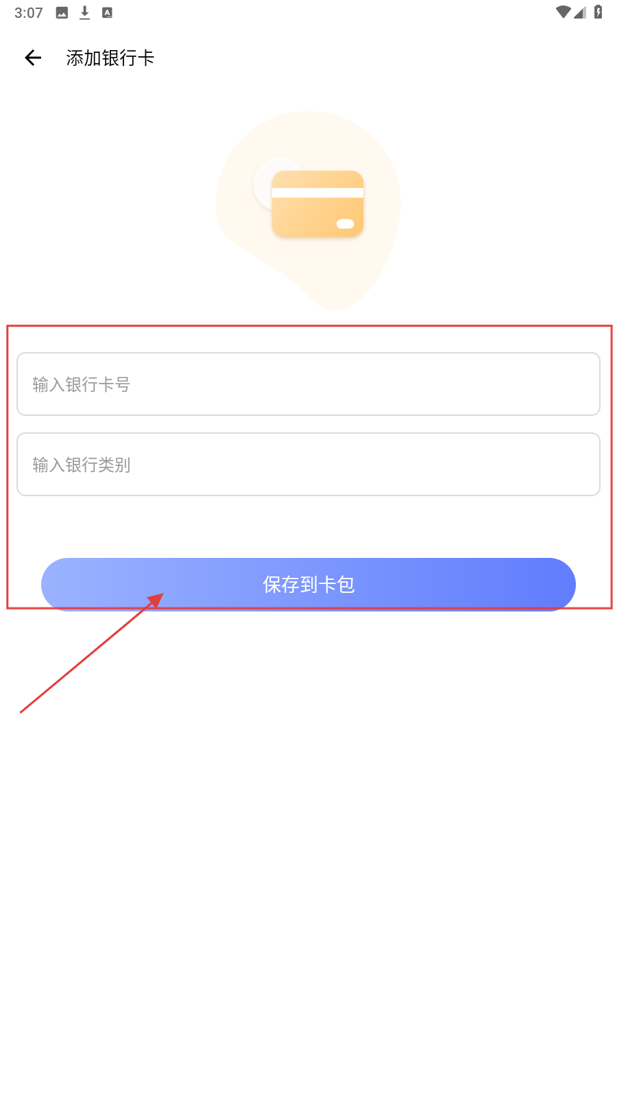 3、填【银行卡号】【银行类别】,点【保存到卡包】,完成银行卡添加流程。