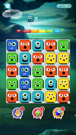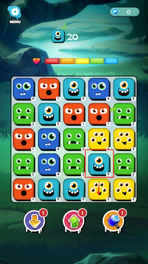 3、进行游戏:进入游戏界面后,开始合并相同数字的怪物表情,以完成关卡目标。