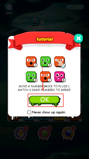 2、学习规则:在教程中,了解如何通过移动数字方块来合并相同的数字。点击“OK”确认了解规则。