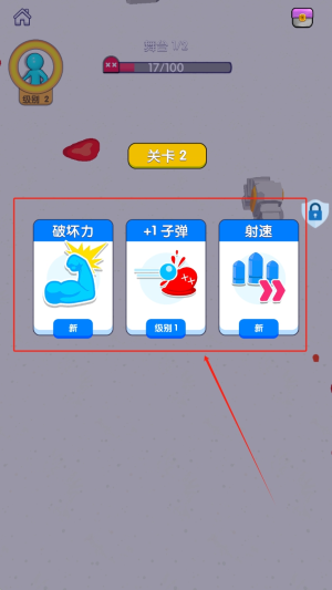 3、如何升级能力?在游戏过程中,收集足够的金币后,可以点击“关卡2”按钮,进入能力升级界面,选择并升级你的能力。