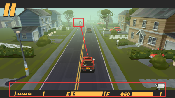 3、驾驶过程中,关注底部的(损伤)、(油量)等状态条,及时规避障碍物减少损伤,同时留意前方出现的道具,合理收集利用。