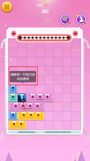 3、使用道具:当同一行的方块被消除时,可以点击使用特殊道具来帮助游戏进行。