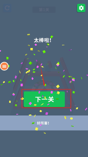 3、进入下一关:成功完成后,点击“下一关”按钮,继续游戏进程。