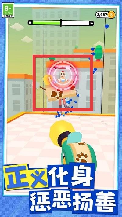2、游戏中,瞄准敌人如画面中的目标角色,利用武器射击,注意上方进度条,把握攻击节奏,击败敌人。