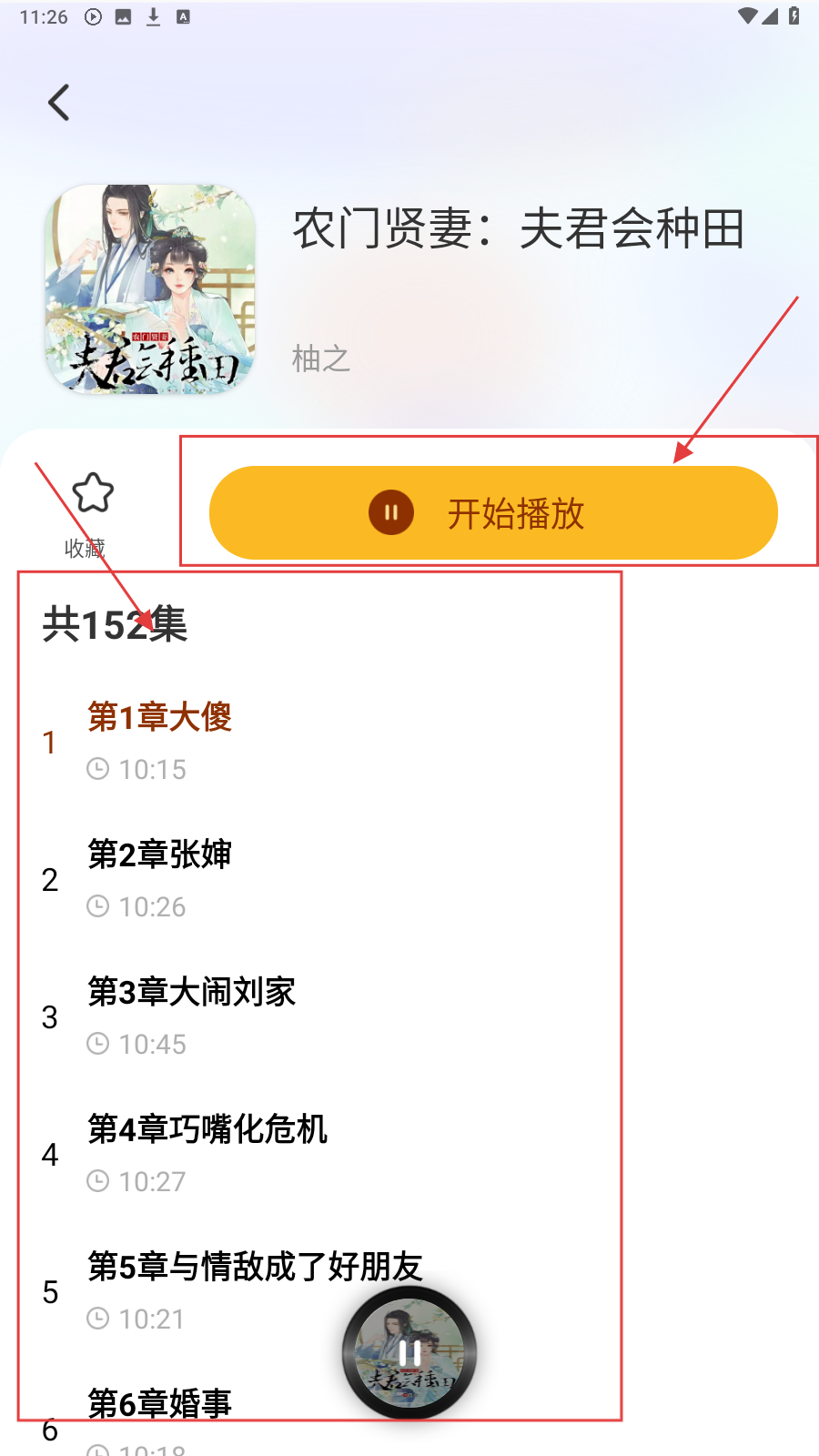2、点选内容,进入作品页,可看集数列表,点【开始播放】听音频。