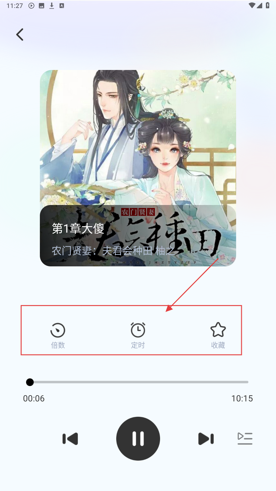 3、播放时,可设置【倍数】【定时】,点【收藏】存作品,完成听书及设置流程。