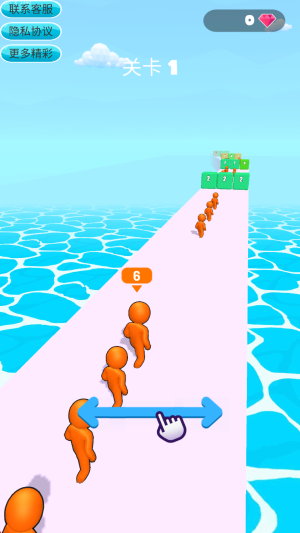 3、解压跑酷体验:简单易上手的操作,搭配轻快音效,在奔跑、推人过程中释放压力,随时随地享受轻松愉悦的游戏时光。