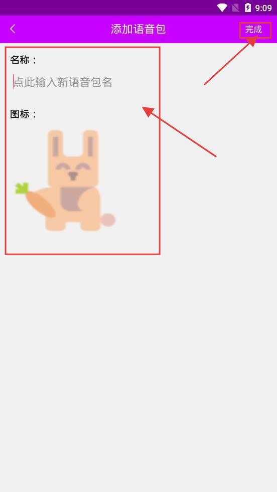 3、进入【添加语音包】页面,进行语音包的编辑,编辑好后点击【完成】即可。