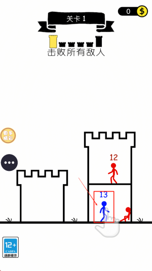 2、刺激推塔闯关:融合动作与策略元素,玩家需操控火柴人击败敌人,突破重重关卡,最终推倒敌方防御塔,体验爽快战斗乐趣。